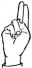На ћирилици написано ЈУГОЉУБ МАЛИЧАНАЦ састоји се из 16 слова [?]. Исписано ћириличном једноручном азбуком за глувонеме: